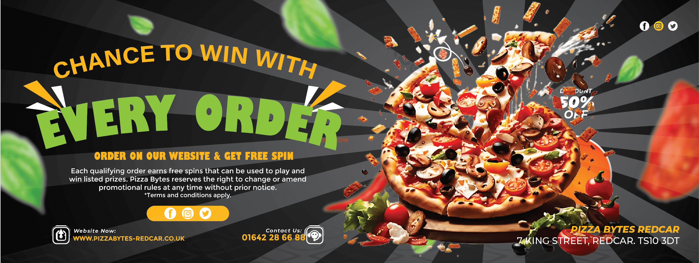 Any 10" Pizza, Half Parmo with Chips, Beef or Cheese burger with Chips, Portion of Doner, Salad and 1 Regular Sauce Dip